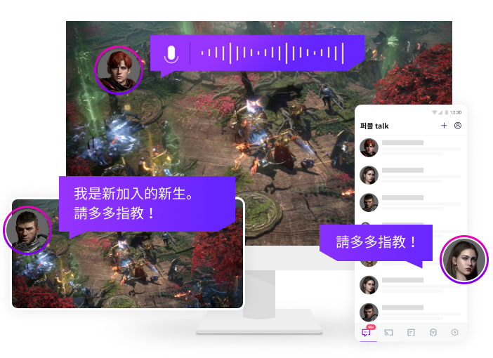 PURPLE talk能夠和未登入於遊戲內的好友進行文字/語音等,以最方便的各種方式進行交流
